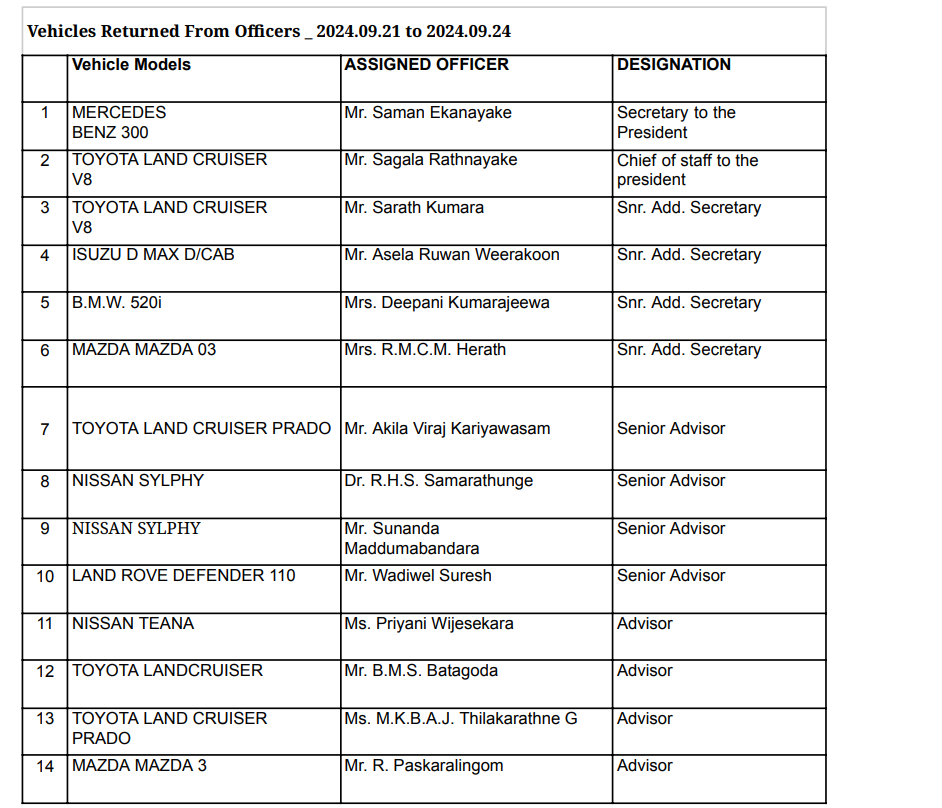 Home/හිටපු ජනපතිගේ පෞද්ගලික කාර්ය මණ්ඩලයට ලබාදී තිබූ වාහන 107ක තොරතුරු එළියට – පාවිච්චි කළ අයගේ නම් මෙන්න !/Screenshot-2024-09-30-155910 Screenshot-2024-09-30-155910