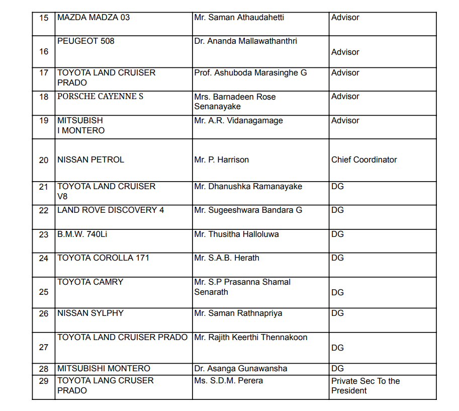 Home/හිටපු ජනපතිගේ පෞද්ගලික කාර්ය මණ්ඩලයට ලබාදී තිබූ වාහන 107ක තොරතුරු එළියට – පාවිච්චි කළ අයගේ නම් මෙන්න !/Screenshot-2024-09-30-160124 Screenshot-2024-09-30-160124