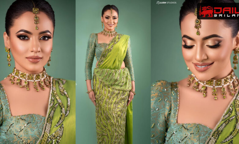 ලා කොළ පැහැති ලස්සන ඔසරියකින් හැඩවෙලා ඉන්න ඇගේ සුන්දරත්වය නම් ඇත්තටම කියාගන්න බැරි තරම්..